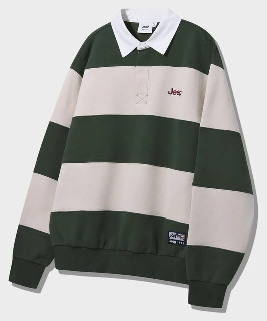 中性版【WE ARE】韓國JEEP 翻領寬條紋大學TJR5TSU825