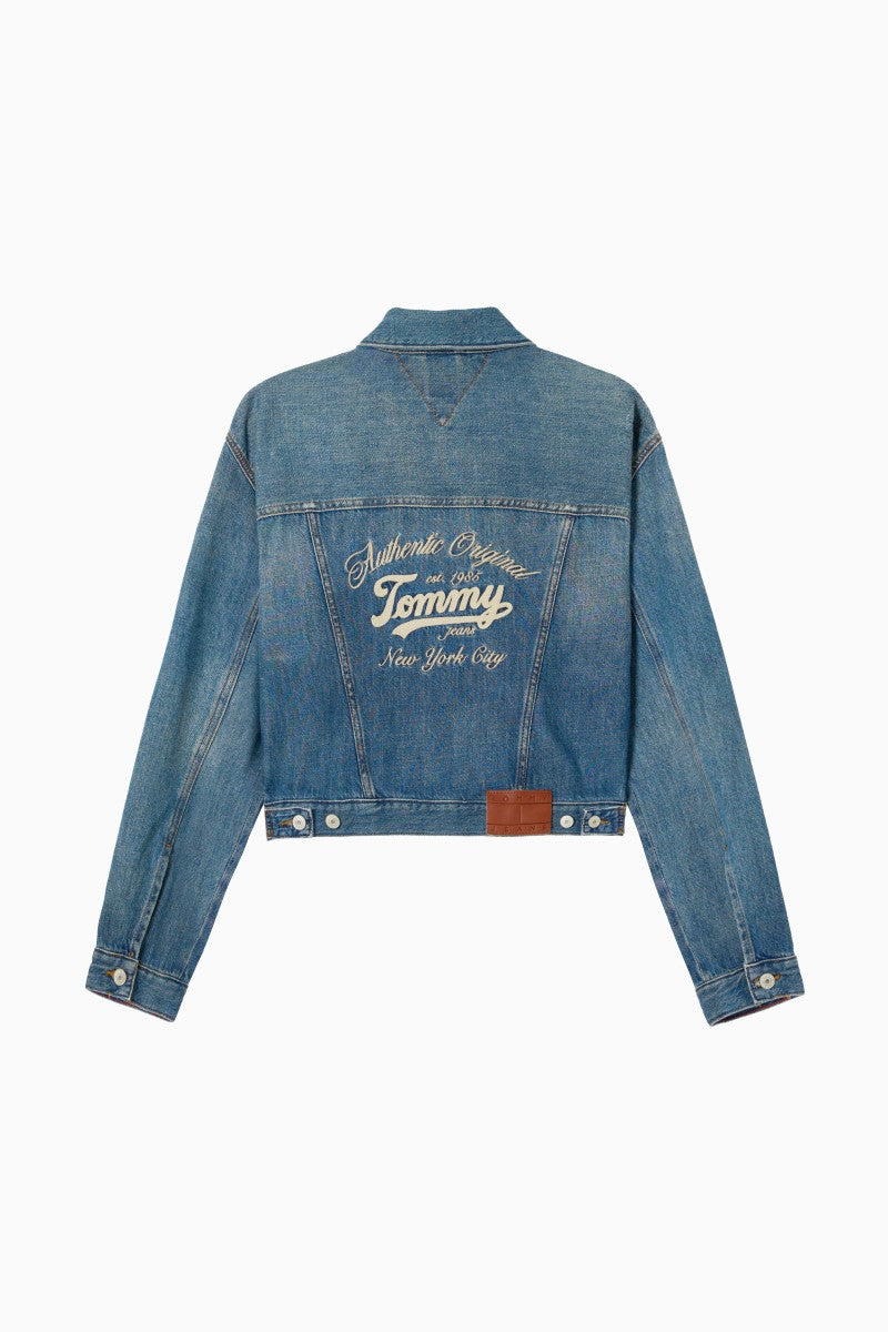 女款【WE ARE】韓國TOMMY JEANS 短版背面刺繡刷舊牛仔外套 T32F6NJC12TWT1