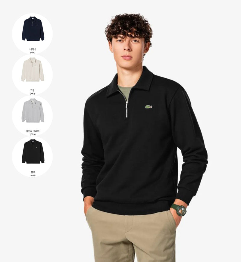 男款【WE ARE】韓國LACOSTE鱷魚半拉鏈領大學T衛衣SH197E55N