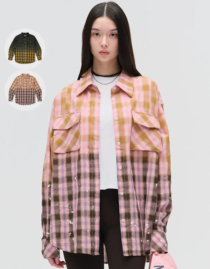 限時折扣【WE ARE】韓國MMLG 女款漸層格紋襯衫MMWBE1TSL151
