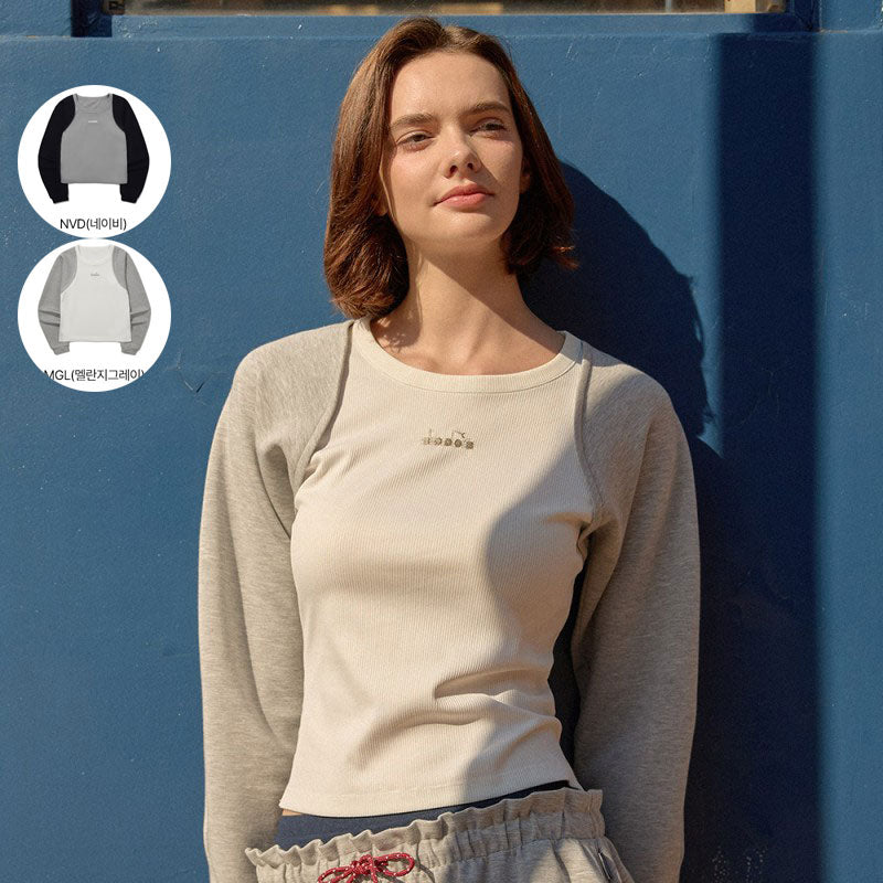 女款【WE ARE】韓國Diadora休閒異材質拼色長袖T恤D5322LFS33