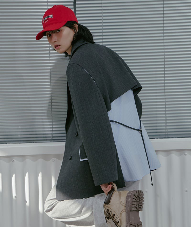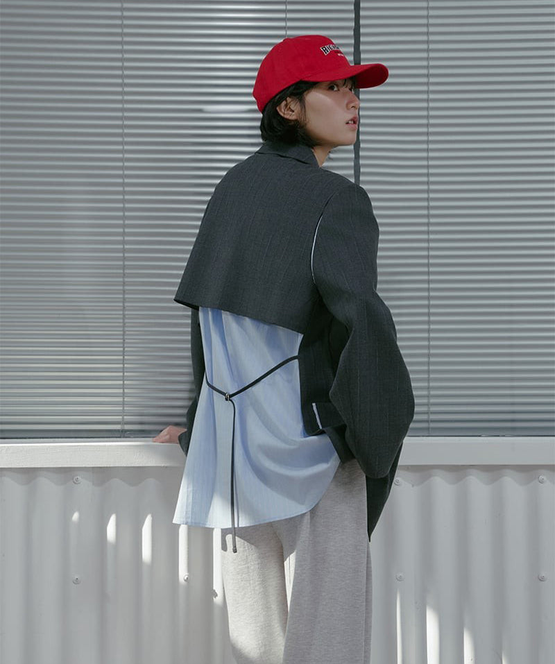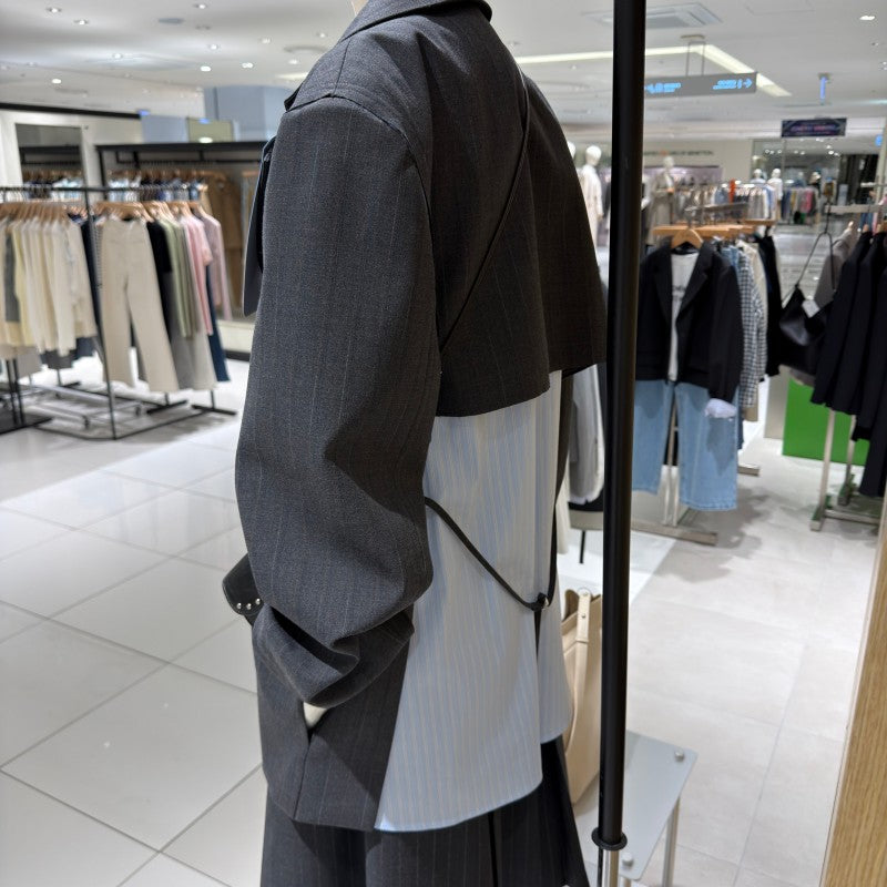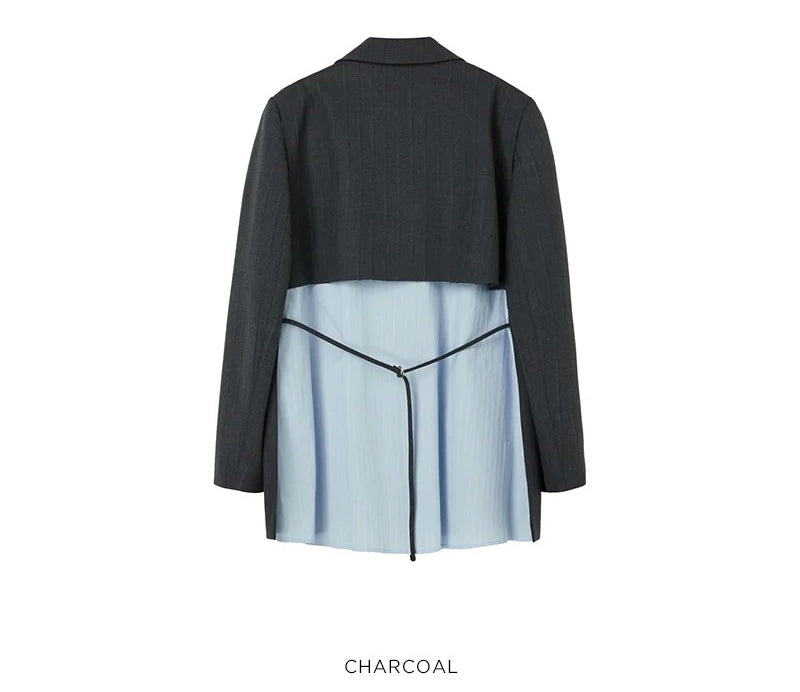 【WE ARE】韓國LAP 異材質接拼西裝外套AS1WJ266