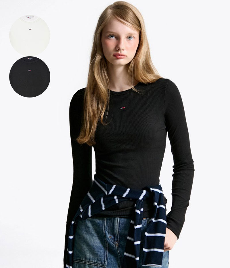 女款【WE ARE】韓國TOMMY JEANS基礎款小標長袖上衣 T32F6TTO03TWT1